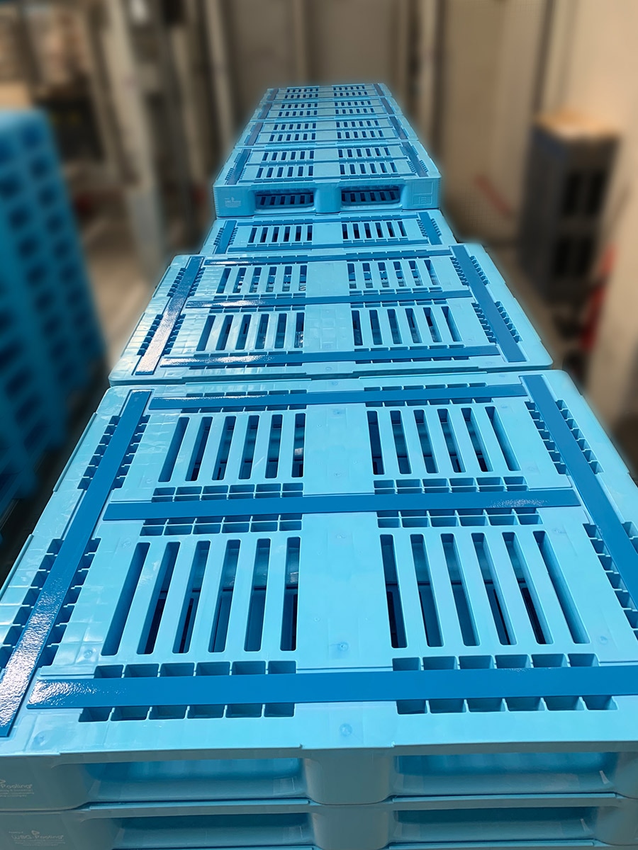 Hält allem stand: Unsere Mehrwegpalette ist widerstandsfähig und auch für Kühllager geeignet.